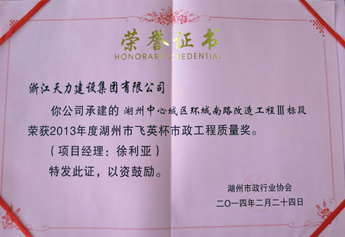 2013年飛英杯市政工程質量獎中心城區環城南路改造工程