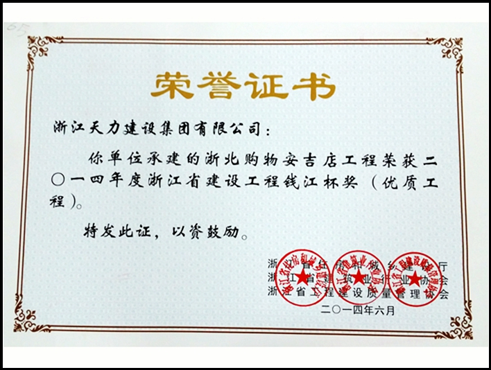2014年度浙江省建設工程錢江杯獎(優質工程)
