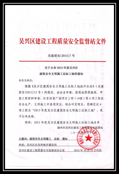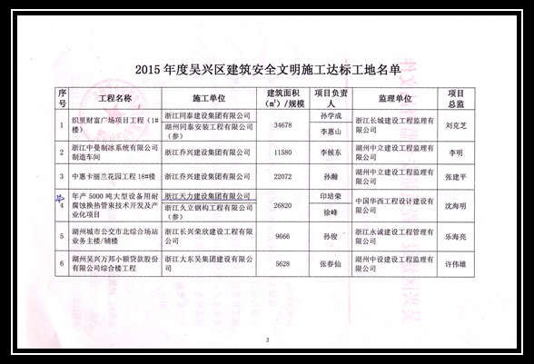 2015年度吳興區建筑安全文明施工達標工地-年產5000噸大型設備用耐腐蝕換熱管束技術開發及產業化項目