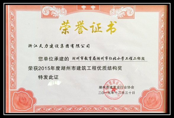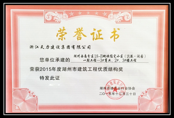 2015年度湖州市建筑工程優質結構獎評定結果