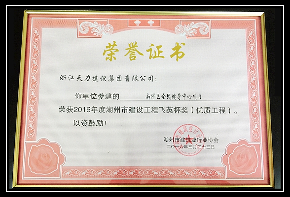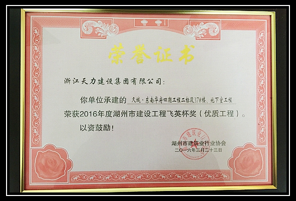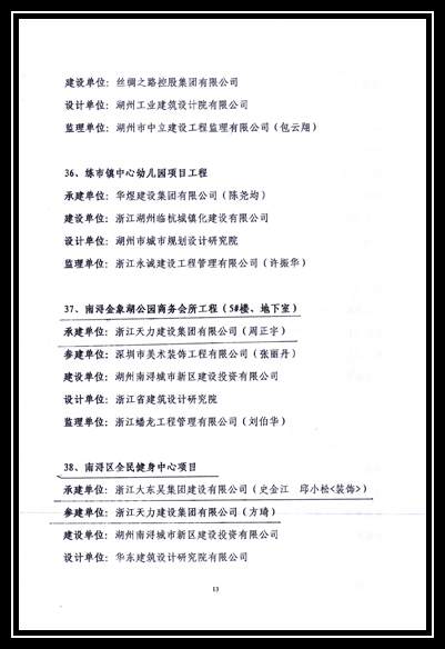 2016年度湖州市建設工程“飛英杯”獎(優質工程)評選結果