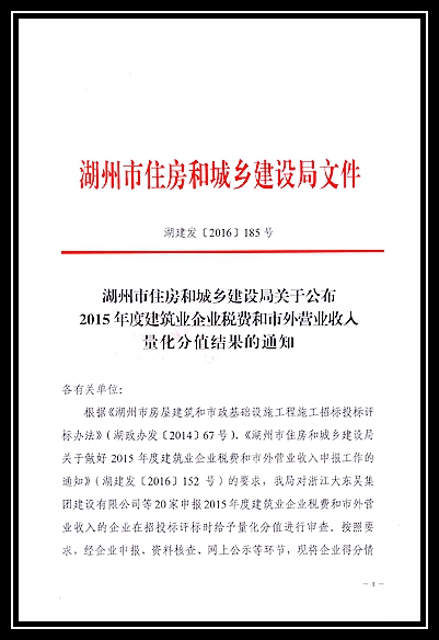 2015年度建筑業(yè)企業(yè)稅費(fèi)和市外營(yíng)業(yè)收入量化分值結(jié)果的通知