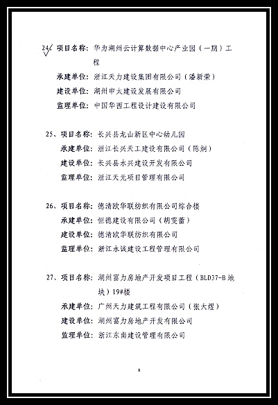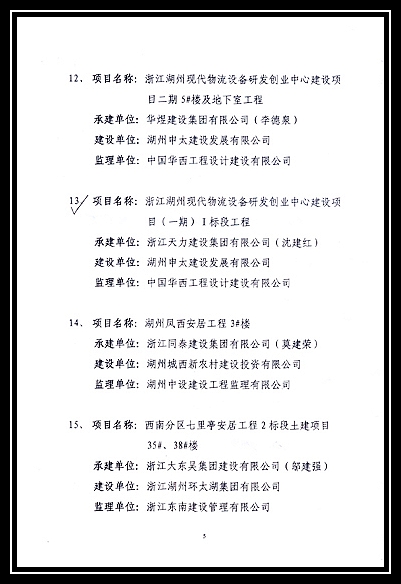 2016年度湖州市建筑工程優質結構獎評審結果的通知