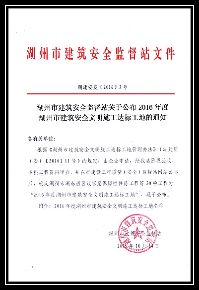 2016年度湖州市建筑安全文明施工達標工地