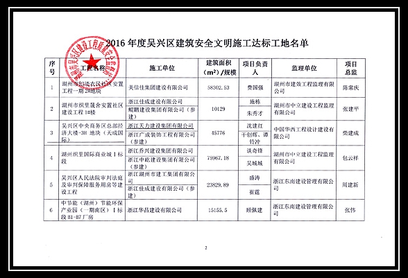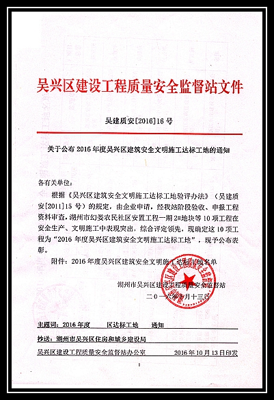 2016年度吳興區建筑安全文明施工達標工地
