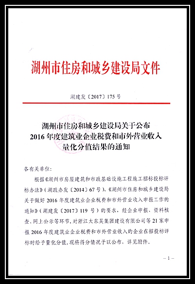 2016年度建筑業(yè)企業(yè)稅費(fèi)和市外營(yíng)業(yè)收入量化分值結(jié)果的通知