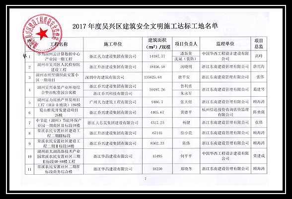 2017年度吳興區建筑安全文明施工達標工地