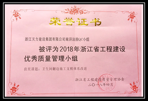 南潯法院QC小組喜獲“2018年浙江省工程建設(shè)優(yōu)秀質(zhì)量管理小組”