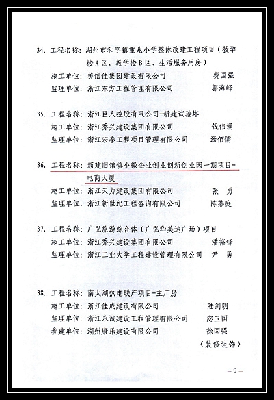 2019年度湖州市建筑安全文明施工優勝標化工地