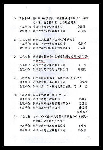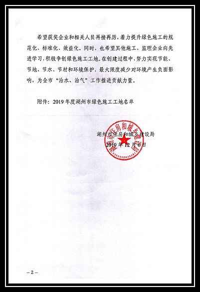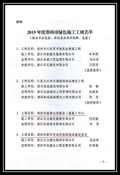 2019年度湖州市綠色施工工地