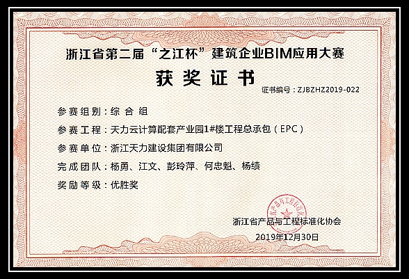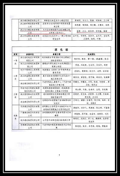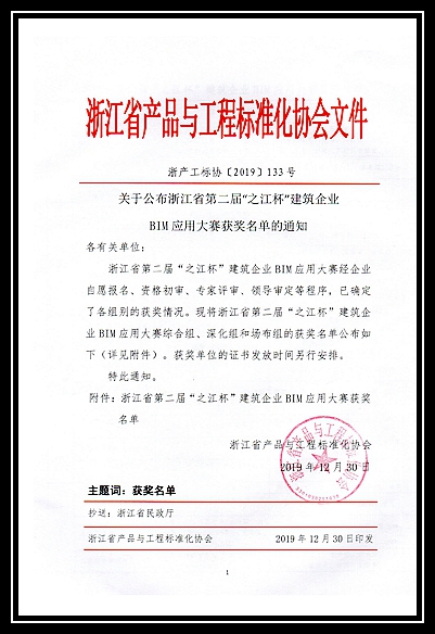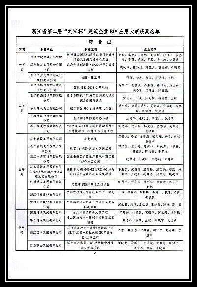 浙江省第二屆“之江杯”建筑企業BIM應用大賽獲獎