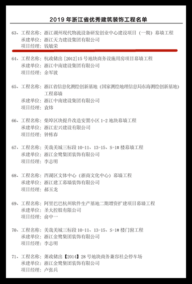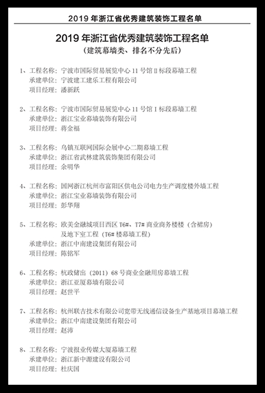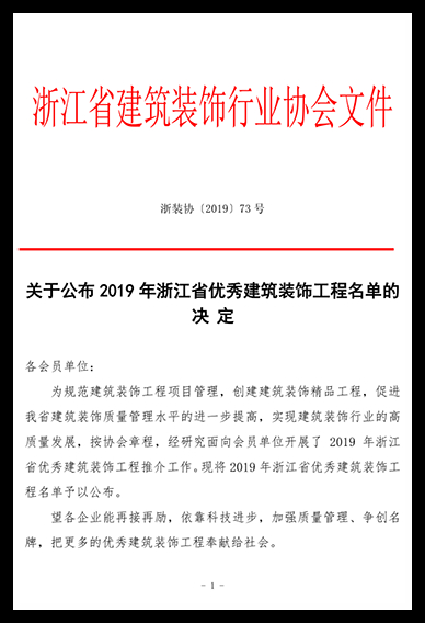 2019年浙江省優秀建筑裝飾獎工程