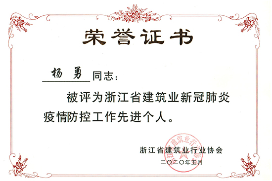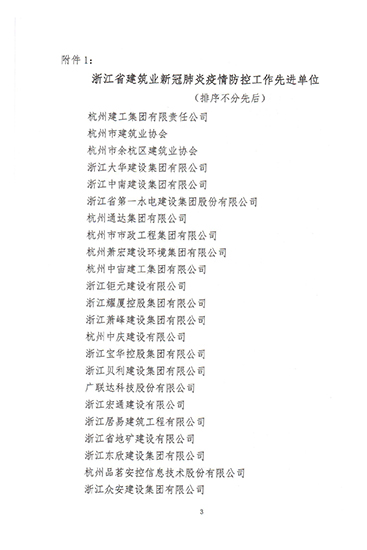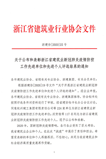 浙江省建筑業新冠肺炎疫情防控工作先進單位和先進個人
