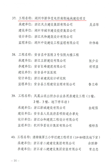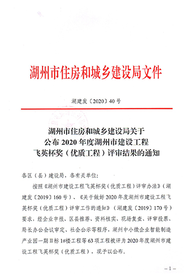 2020年度湖州市建設工程飛英杯獎(優質工程)