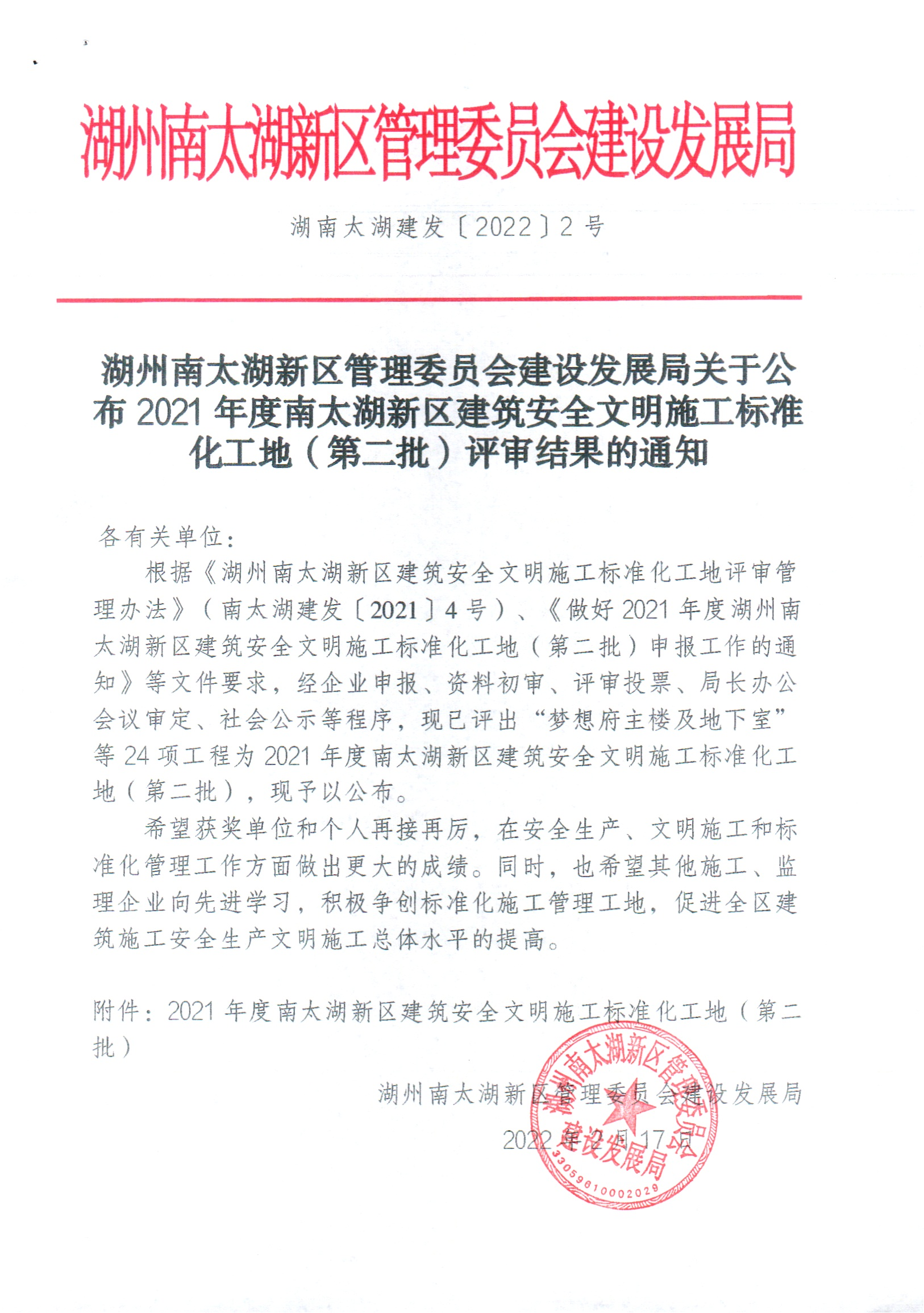 2021年度南太湖新區(qū)建筑安全文明施工標(biāo)準(zhǔn)化工地(第二批)