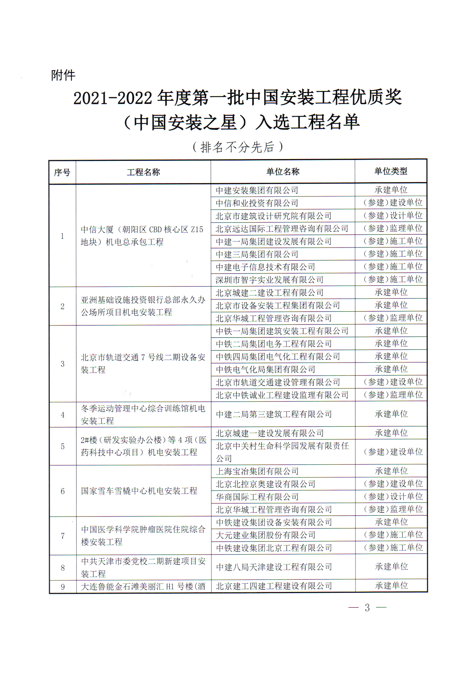 2021-2022年度第一批中國(guó)安裝工程優(yōu)質(zhì)獎(jiǎng)(中國(guó)安裝之星)