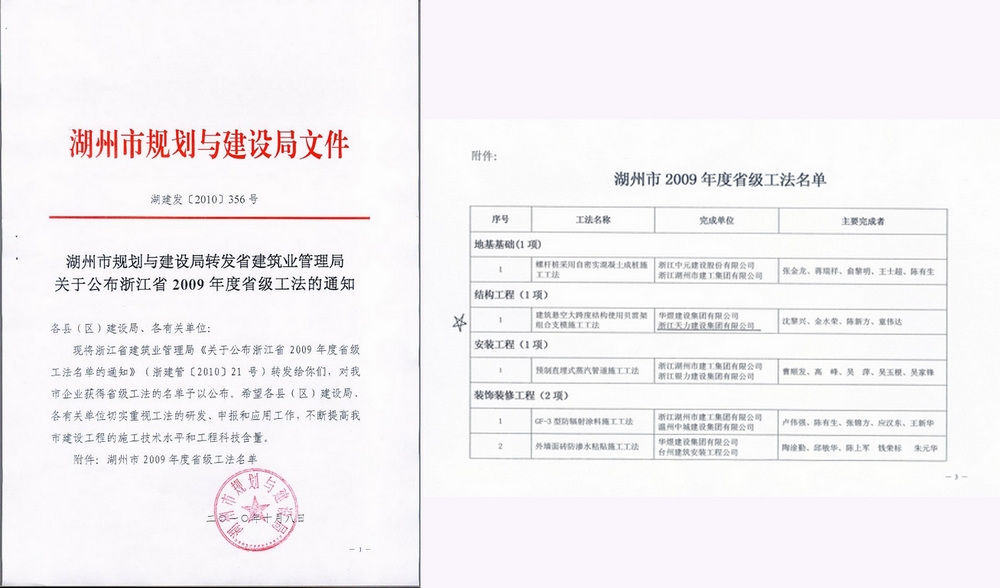 2009年度浙江省省級工法