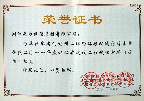 湖州二環西路移動通信綜合樓2011年度浙江省錢江杯