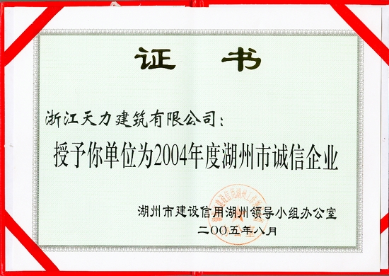 2004年度湖州市誠信企業