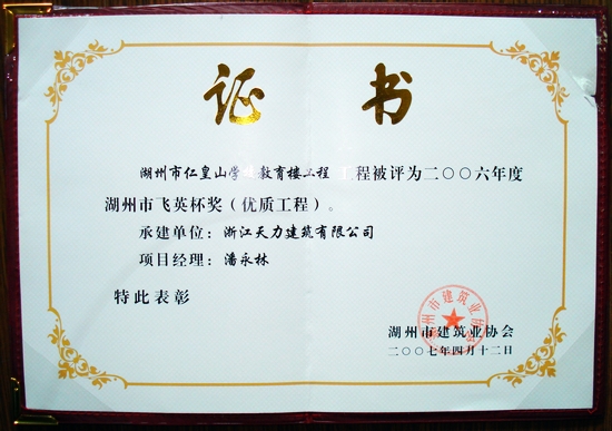 湖州市仁皇山學(xué)校教育樓工程2006年度湖州市飛英杯