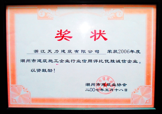 2006年度市建筑施工企業行業信用評比優勝誠信企業