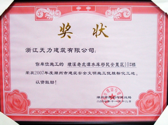 埭溪老虎潭水庫移民安置區10#樓2007年度湖州市優勝標化