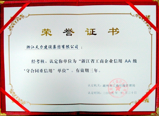 2009年度浙江省工商企業(yè)信用AA級守合同重信用單位