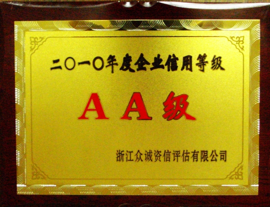 2010年度企業(yè)信用等級(jí)AA級(jí)