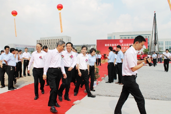 浙江省高級人民法院院長齊奇,湖州市市委、常委、紀委書記陳浩,湖州市中級人民法院院長張宏偉,南潯區區委副書記、區長吳繼平,南潯區常務副區長梅梓華等領導及我公司領導張勇、董利強等出席了開工典禮。