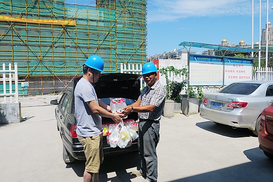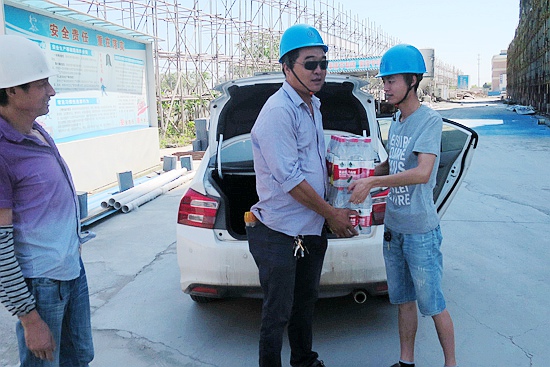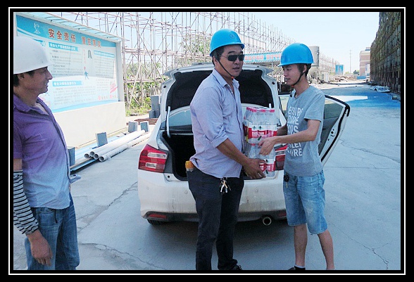 盛夏時(shí)節(jié),湖州地區(qū)連日來驕陽似火,高溫酷熱,但是公司廣大職工不畏困難,戰(zhàn)高溫、斗酷暑,依舊奮戰(zhàn)在工地,為實(shí)現(xiàn)公司全年目標(biāo)而奮力拼搏。7月30日,集團(tuán)公司開展高溫慰問活動(dòng),公司領(lǐng)導(dǎo)副總經(jīng)理印培榮、工程部副經(jīng)理周正宇帶領(lǐng)公司工程部管理人員深入施工現(xiàn)場,看望、慰問奮戰(zhàn)在高溫一線的廣大職工,為他們送去了風(fēng)油精、藿香正氣水、龍虎人丹等夏季防暑物品與飲品,為職工們帶來了絲絲“清涼”。
