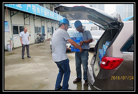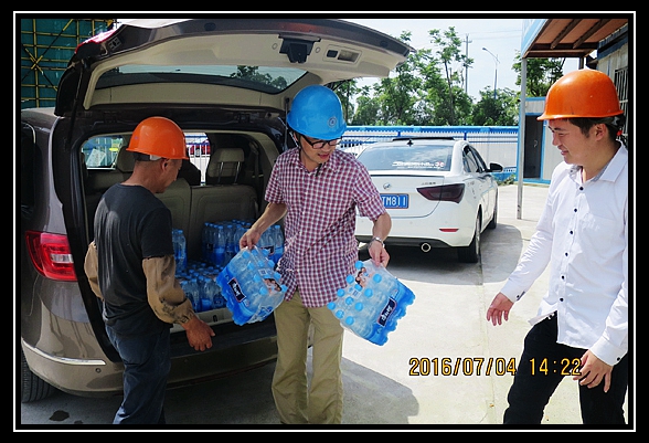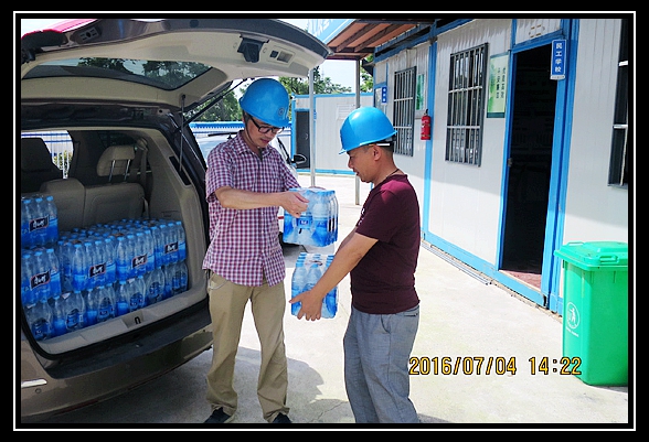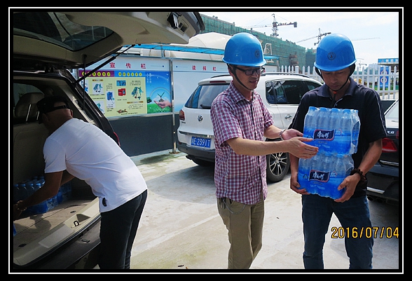 7月4日,本集團公司負責人來到110千伏小河口變電站慰問,把防暑降溫用品送到垂虹公園二期、康山安居社區(qū)、汎港潤園東區(qū)工程,現(xiàn)代物流、華為云計算中心、愛山小學高新區(qū)校區(qū)、華萃庭院等工程的一線員工手中。