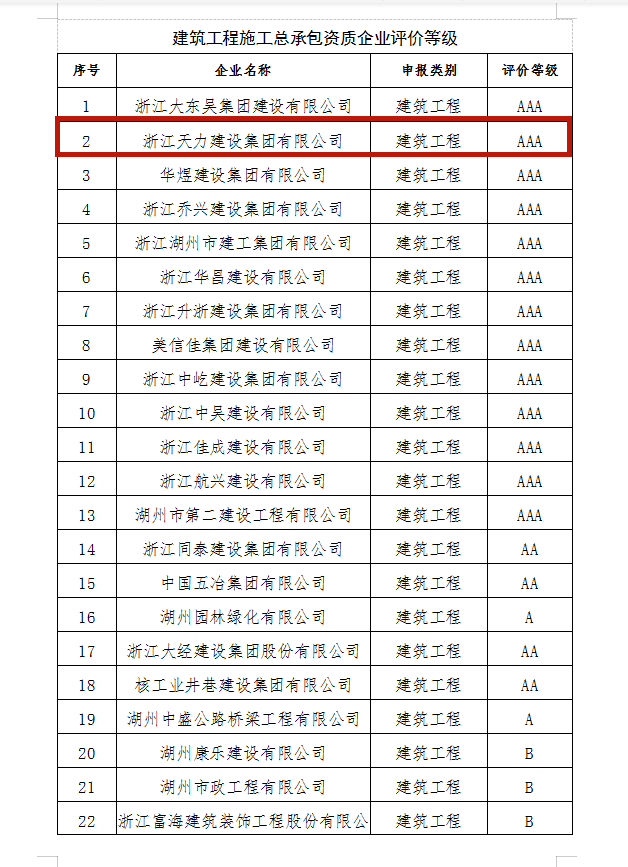 集團(tuán)公司市政公用工程施工總承包資質(zhì)及建筑裝飾裝修工程專業(yè)承包資質(zhì)均被湖州市建設(shè)局評(píng)為2020年度企業(yè)信用評(píng)價(jià)“AAA”級(jí)企業(yè)。