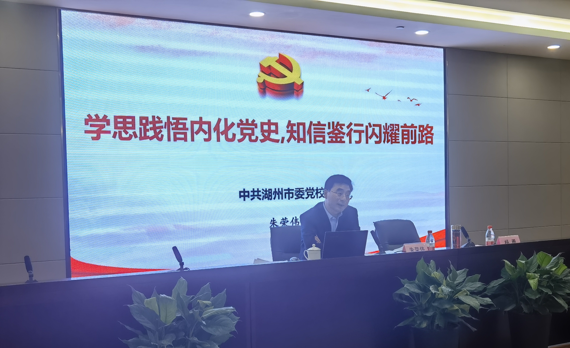 為深入貫徹落實習近平總書記在黨史學習教育動員大會的重要講話精神,貫徹落實全市黨史學習教育動員大會精神,4月8日下午,集團公司在一樓報告廳組織召開了黨史學習教育動員部署會暨專題黨課講座。此次講座特地邀請浙江生態文明干部學院常務副院長、中共湖州市委黨校常務副校長朱榮偉同志作主講人,集團公司總裁楊勇作動員講話,公司領導攜全體黨員、全體員工共同參加學習。
