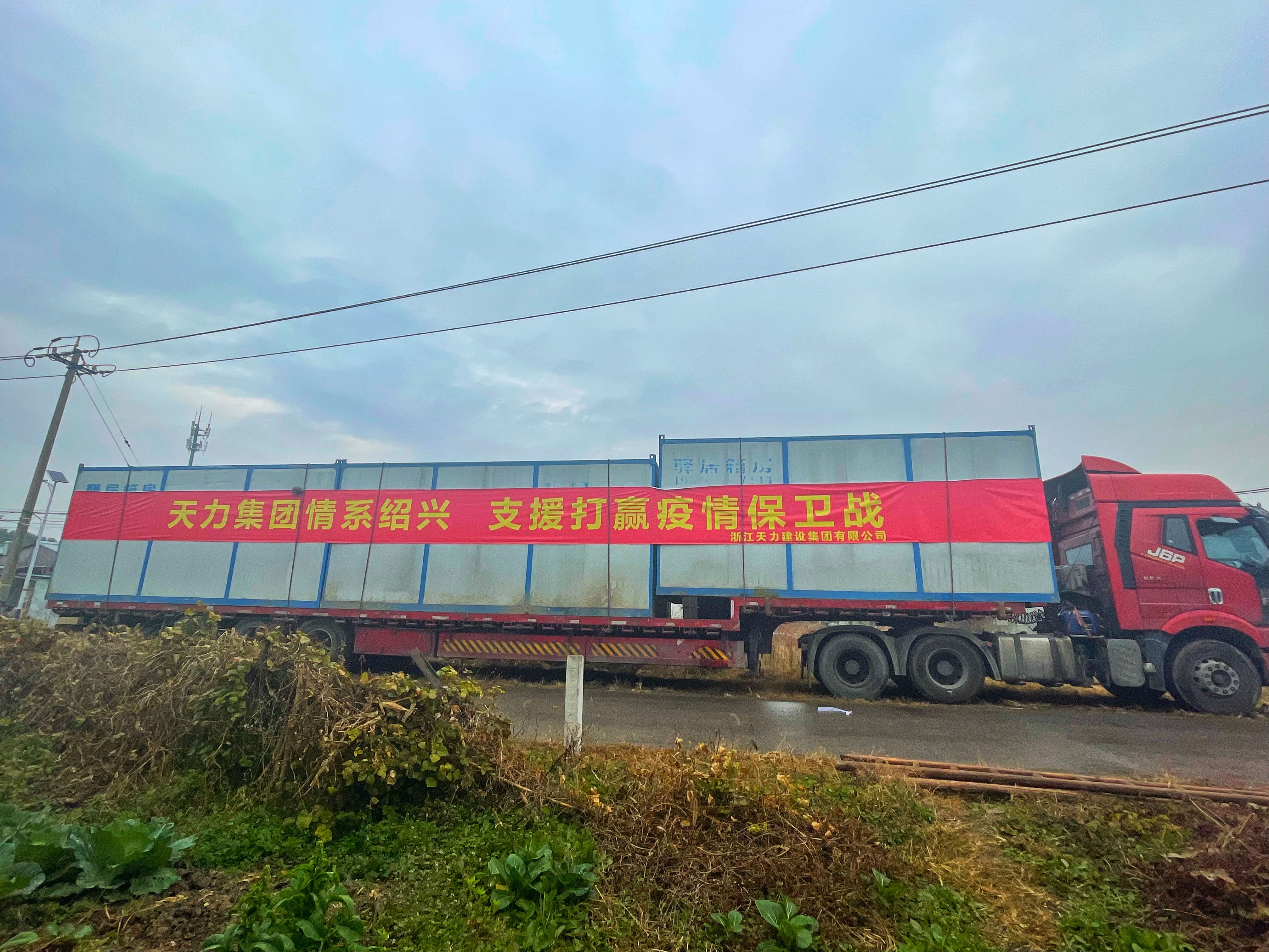一場突如其來的疫情爆發(fā),使得紹興市防控物質(zhì)告急,12月13日晚,前方疫情防控支援工作已刻不容緩。一場快速響應(yīng)的抗疫行動,天力集團當(dāng)天迅速成立物資小組對緊張的物資和交通資源展開細(xì)致的排摸和搜索,采購了集裝箱“隔離用房”30套,并于12月15日上午迅速發(fā)往紹興上虞,以最及時、最便捷、最高效的方式支援前方防疫戰(zhàn)場。