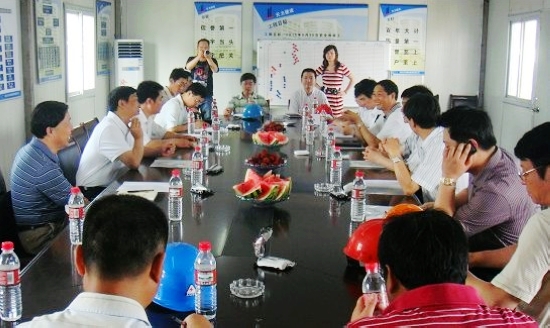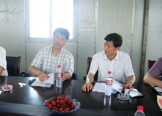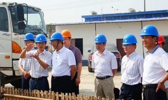 2009625,湖州市常委、市紀委王敏奇書記、市建設局局長祝時偉、副局長沈小龍再次帶領有關部門負責人考察我公司承建的北白魚潭“三房”工程施工情況。會議在現場辦公區會議室舉行,市領導在察看施工現場后,了解了項目目前的進展情況,聽取了單位的工作匯報,分析了存在的問題,并對下一步工作進行重點部署。