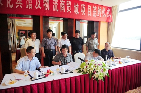 2009年7月20日,我公司董事長楊虎麟、副總經理葉法根與敦化市人民政府馮喜亮市長、韓興海書記、徐立君常委簽訂了“敦化賓館及物流商貿城”項目投資合作協議書。該項目是吉林省東部地區最大的土特產批發,長三角產品集散物流基地,建設總用地20公頃,總建筑面積30萬平方米,總投資6億元。該項目建成運營后,商貿城交易額將達30億元。