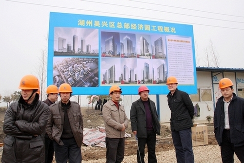 2011219下午1330,吳興區區長蔡旭昶一行來湖州市東部新區總部經濟大樓視察工作,領導班子向蔡區長詳細匯報了該工程的具體情況,我公司競得的3H地塊已完成打樁。
